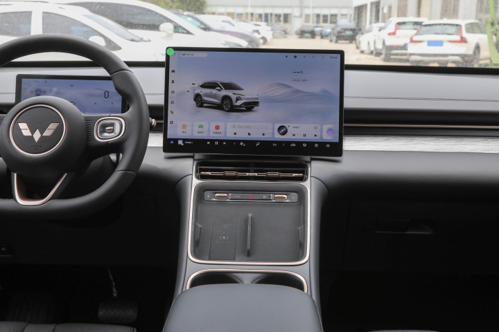 进到车内,整体设计风格基本延续了现款车型的布局,看起来简洁而现代,中控台采用了环抱式设计,驾驶者视线和手部操作都相当顺手。配备的15.6英寸中控大屏不算夸张,但尺寸适中,操作界面响应速度快,触摸灵敏,显示效果清晰,功能布局也比较合理。8.8英寸的组合仪表虽然没有全液晶大屏那么华丽,但信息显示全面,包括速度、能耗、续航等重要数据一目了然,驾驶时不用低头过多操作,安全性得到保障。