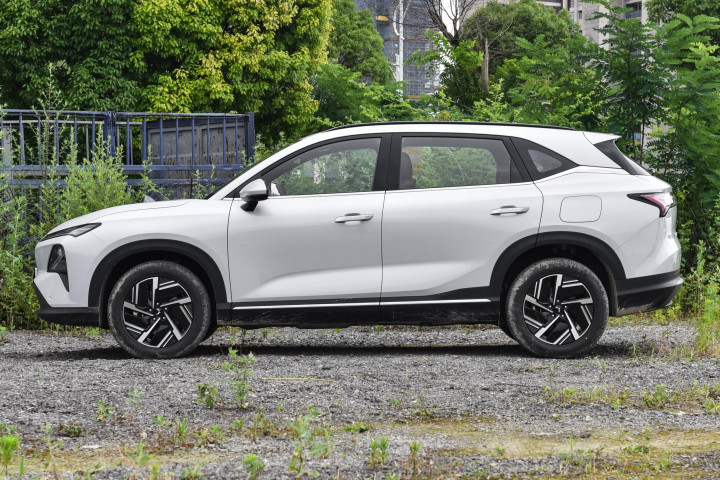 从侧面看,星光S的车身线条流畅,车顶的弧度和车窗的设计让整车看起来协调大气。配合低风阻的五辐式轮圈,既提升了车辆的动感,也有一定的空气动力学优势,能够在一定程度上帮助降低风阻和提高燃油经济性。车窗边缘的镀铬饰条增添了一点精致感,细节上表现出厂家对品质感的追求。尺寸方面,新车长4745毫米,宽1890毫米,高1680毫米,轴距达到2800毫米,这个轴距在紧凑型SUV里算宽裕,实际感受中能够为车内空间带来不错的表现。